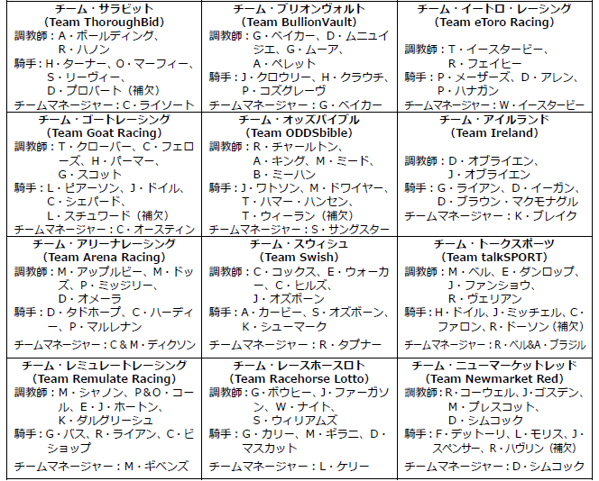参加チーム12組。チーム構成は以下のとおり。