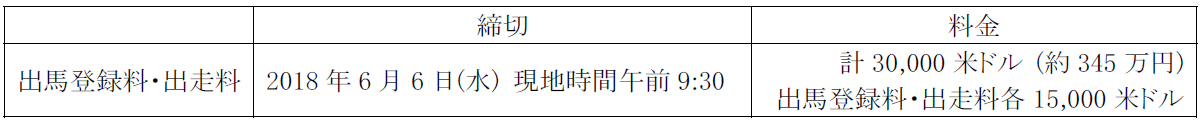 当レースの登録の他に、アメリカ3冠競走の登録が必要となります。