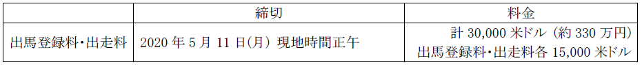 当レースの登録の他に、アメリカ3冠競走の登録が必要となります。
