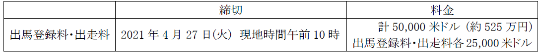当レースの登録の他に、アメリカ3冠競走の登録が必要となります。