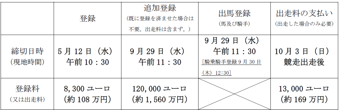 ※詳細については、JRA栗東・美浦トレーニング・センターの競走課、又は ジャパン・スタッドブック・インターナショナル国際業務部にお問い合わせください。 調教師ID取得や競走馬登録に時間を要することから、なるべく早めに一報をお願いいたします。(4月21日(水)目安)。