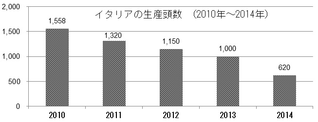 イタリアの2014年生産頭数、1,000頭を大きく下回る(イタリア)【生産】